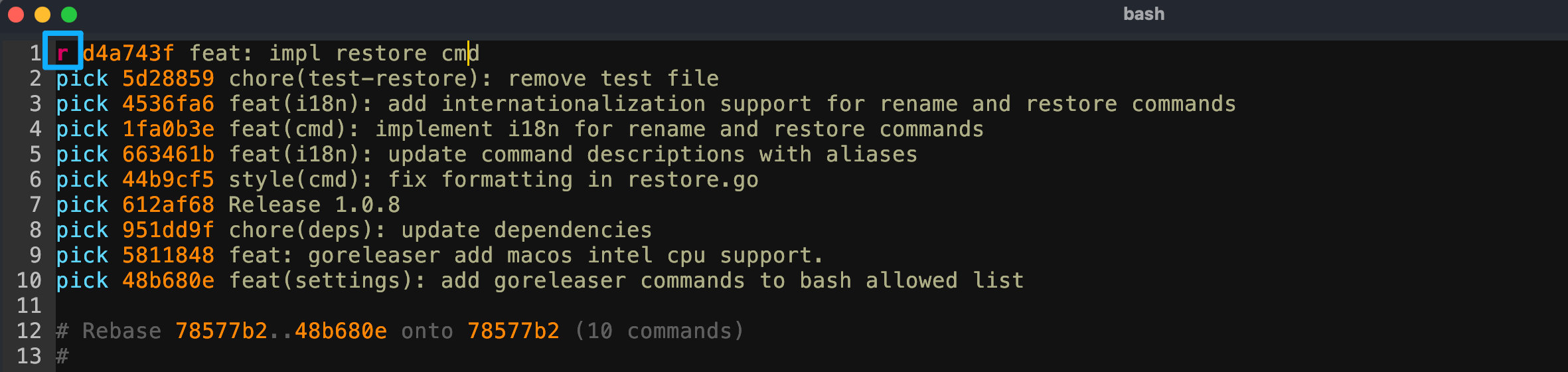 # 2. 找到以 a1b2c3d 开头的那一行,把前面的 pick 改成 reword(或 r)